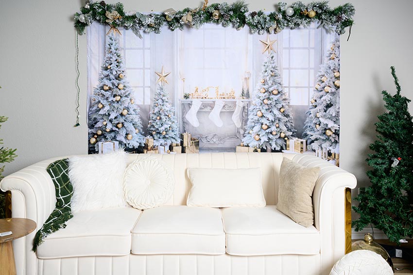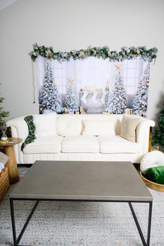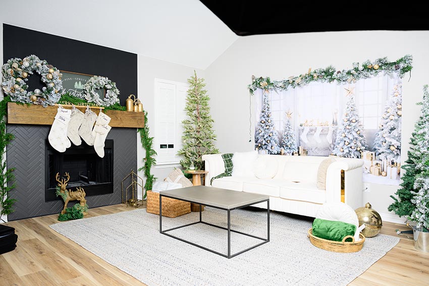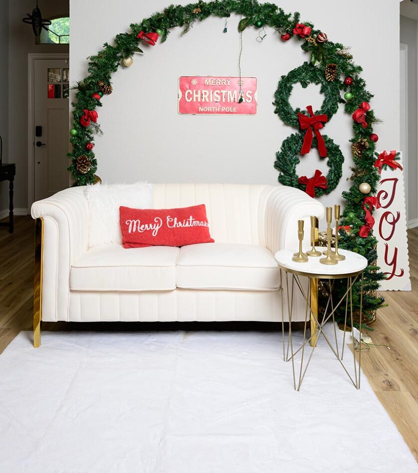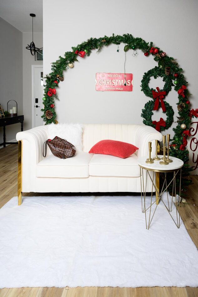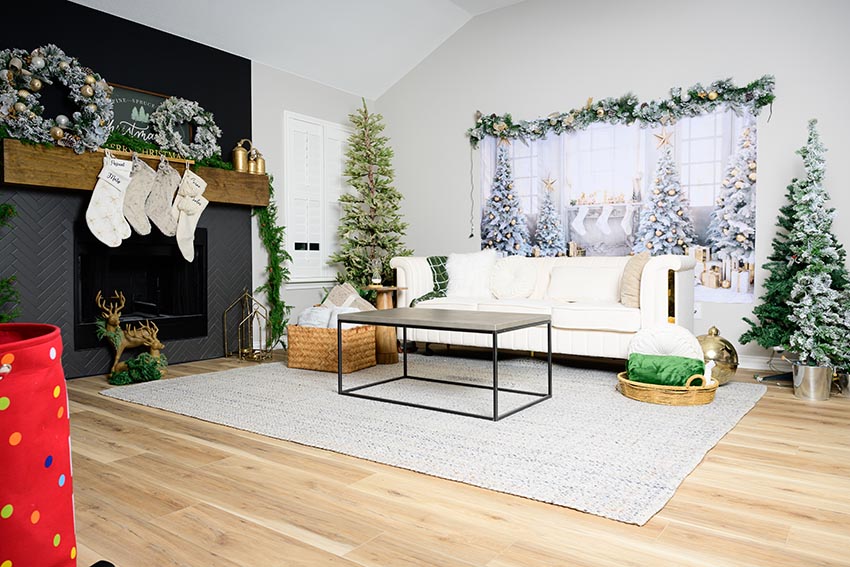 Rincones acogedores con sofás y accesorios navideños.